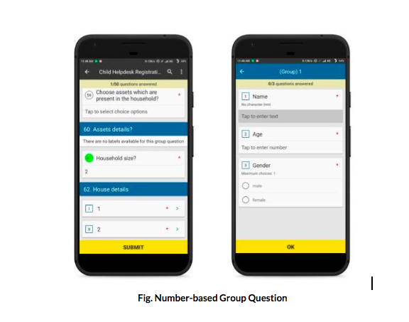 A typical example of this type of group repetition would be a household questionnaire. When a team goes on the field to visit households and interview household members, the number of household members is not known beforehand. Thus, when team members need to ask basic details of all household members (e.g. Name, Age, Gender, etc.), this group of questions needs to be repeated over the number of household members.