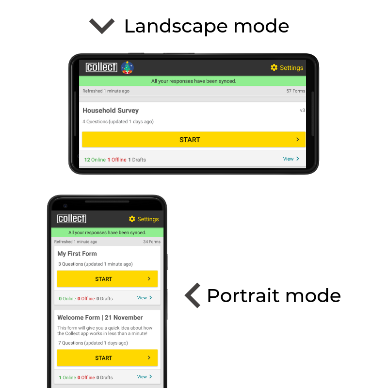 The Collect mobile app lets you choose between "landscape" and "portrait" screen orientation. Here is how you can choose the mode you want.